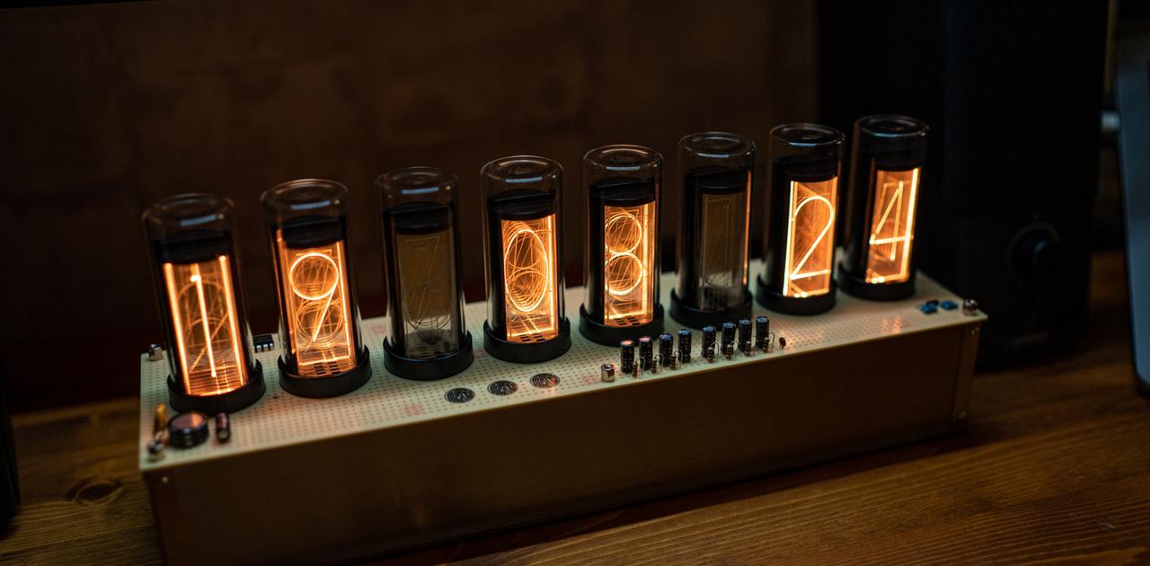 アニメの世界観もたっぷり。LEDで再現したニキシー管時計でデスクがレトロに映えました