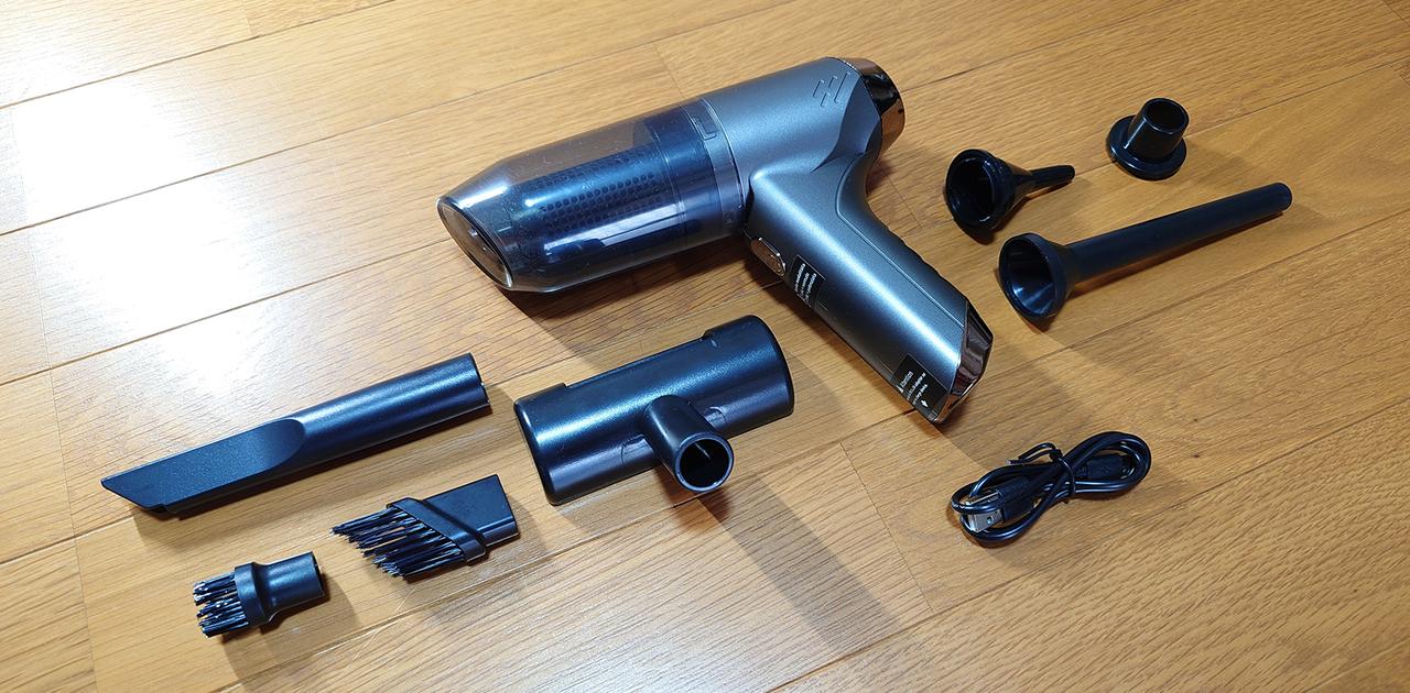 車内のゴミを強力吸引。エア噴射もこなせるミニ掃除機で、隅やスキマまでピカピカに!