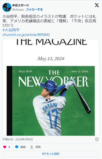 【MLB】大谷翔平、胴長短足のイラストが物議 ポケットには札束、アメリカ老舗雑誌の表紙に「蔑視」「理解」「不快」反応飛びかう