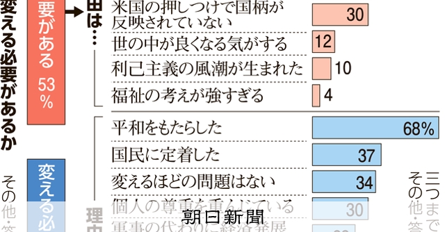 憲法を「変える必要がある」53% 理由に挙げたのは 朝日世論調査